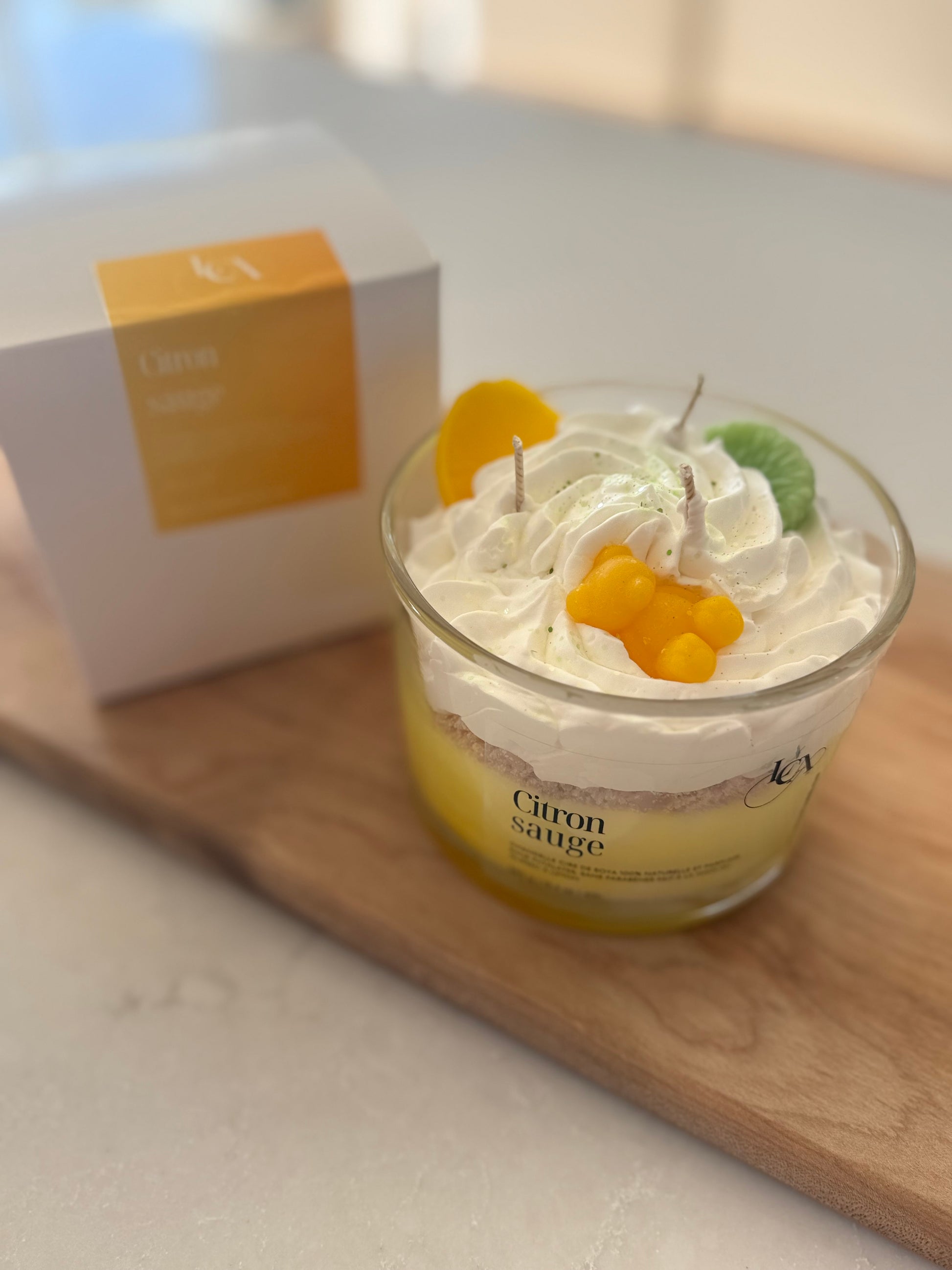 Cette bougie artisanale faite à la main est unique en son genre, avec une décoration unique qui peut différer d'une production à l'autre selon l'humeur du chef. Elle est composée de cire de soja naturelle et d'huile parfumée sans phtalates ni parabène, et est fabriquée au Québec. Elle pèse environ 380gr (14 oz) et peut brûler pendant 35 à 40 heures.